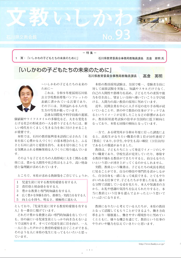 公益財団法人石川県文教会館は、石川県教育委員会が所管する団体です。 |